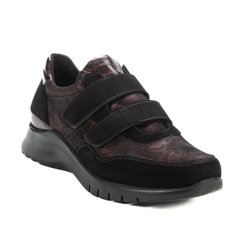 Piesanto 235703-289G Black-Bronze anatomic shoe very light. Over the instep there are two straps with adjustable velcro patch for better containment and fit on every foot. Every shoe contains two removable insoles, which can be used together or separately. Its shock-absorbing and non-slip sole provides a restful and safe walking.