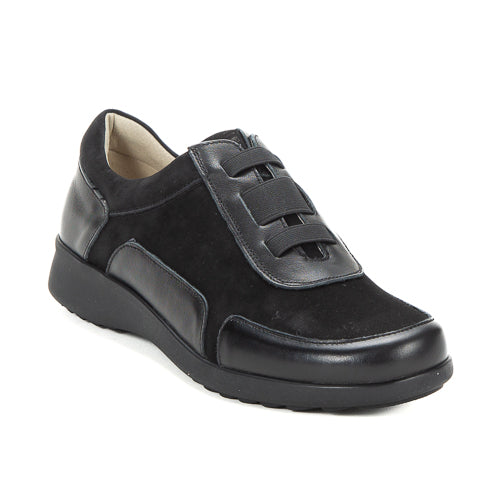 Treintas 4026N Black anatomic shoe very soft with black elastic laces over the instep for better containment. The insole is soft and removable. Its shock-absorbing and non-slip sole provides a restful and safe walking.