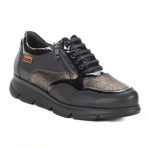 Baerchi 54060-1000 Black anatomic shoe very soft with laces over the instep for better containment and one side zipper for easy fit. The insole is soft and removable. Its shock-absorbing and non-slip sole provides a restful and safe walking.