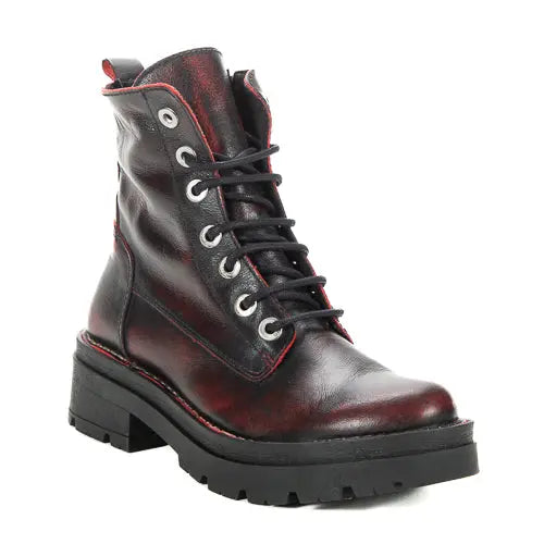 Chacal 6456 Bordeaux anatomic ankle boots with black laces over the instep for better containment and one side zipper for easy fit. Its shock-absorbing and non-slip sole provides a restful and safe walking.