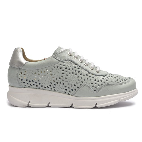 Baerchi Amaral 38603-1302 Turquoise Anatomic Shoe with silver detailing at the back and white laces for a better fit on every foot. Side perforations provide improved breathability, helping keep feet cool and dry during the summer months. The insole is soft, reinforced, and removable. The sole is anti-slip and shock-absorbing, offering comfort and stability with every step.