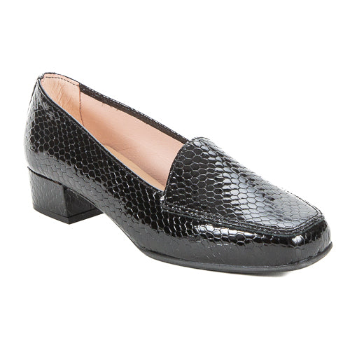 D-chicas Black 1021 anatomic pump patent leather very soft with snake patern. The insole is soft. Its shock-absorbing and non-slip sole provides a restful and safe walking.
