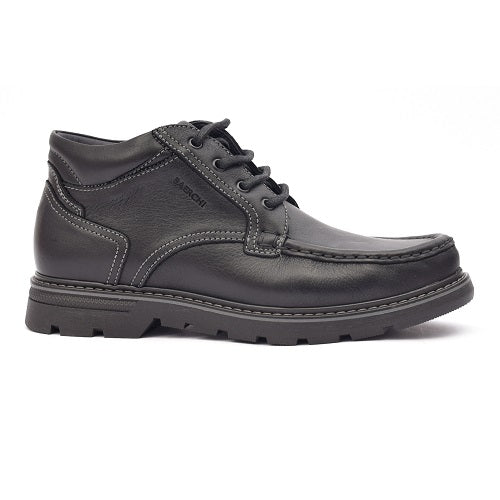 Baerchi Black 2084-1000 Anatomic Mens Boot ,ankle-high. It features black laces for a perfect, customizable fit. The insole is soft and removable. Its shock-absorbing, non-slip sole provides comfort and safety with every step. Designed for both comfort and style, these boots are perfect for everyday wear.