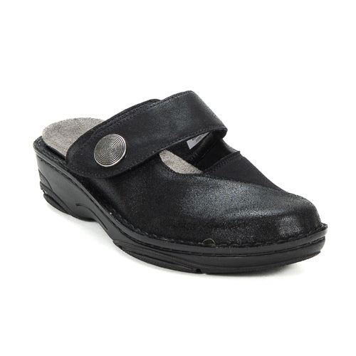 Berkemann Heliane Black 03457-940 anatomic slipper with one strap for containment featuring adjustable velcro patch for a better fit on your foot. The insole is soft and removable. Its shock-absorbing and non-slip sole provides a restful and safe walking.
