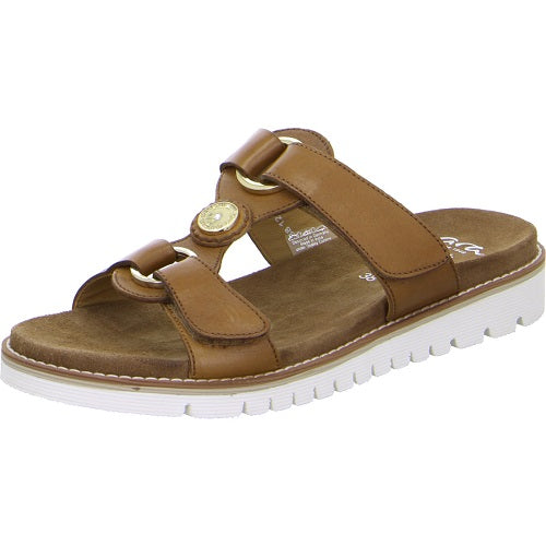 Ara Backless Sandal Kent Sport-S Brown 12-28130-15G with a double velcro patch for a proper fit on every foot and metal decorative elements. The innersole is firmly integrated and made from extremely soft leather. Thanks to the innovative High Soft technology their shock-absorbing system guarantees a soft walking. The flexible and non-slip sole offers a comfortable step.
