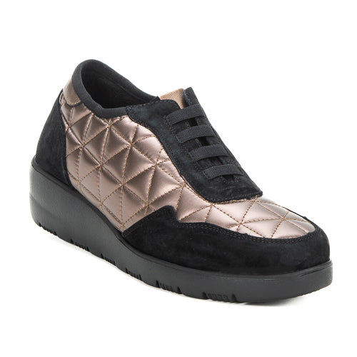 Treintas L-4050 Black - Bronze anatomic shoe with black elastic laces over the instep for better containment. The insole is soft and removable. Its shock-absorbing and non-slip sole provides a restful and safe walking.