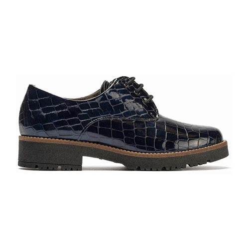 Pitillos Mani 10081 Blue Anatomic Shoe with patent crocodile leather with laces on the top for a perfect fit. The insole is soft and removable with padding for added comfort. Its shock-absorbing and non-slip sole provides a restful and safe walking experience. Pitillos uses cutting-edge insoles in its footwear. With absorbent tissues and antibacterial treatment, they keep your feet ventilated. The use of thermoregulatory material offers greater comfort and breathability, while also eliminating odors and keeping your feet dry with an absorption system superior to that of skin. Made in Spain.