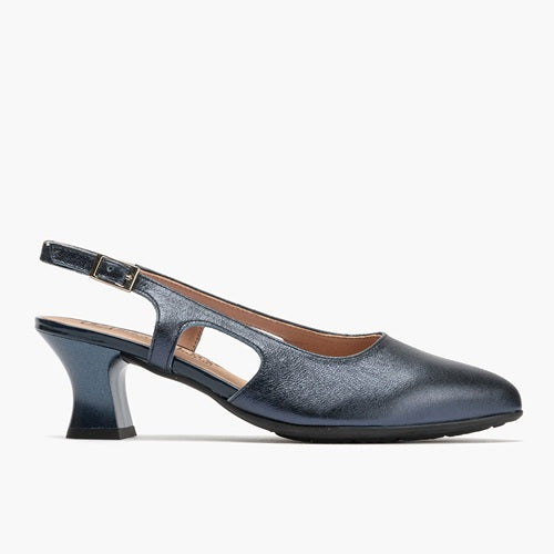 Pitillos Mar 10513 Blue Metallic Anatomic Sandal with a closed toe and open heel design. Side cut-outs add a stylish touch while enhancing breathability. The sandal fastens at the back with a strap featuring an adjustable metal buckle for a secure fit. The insole is soft. The sole is anti-slip and shock-absorbing, offering comfort and stability with every step.