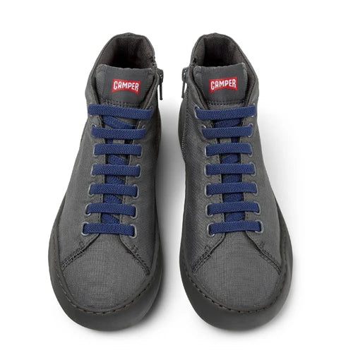 Front height: 2 cm Gray textile sneaker booties for women with OrthoLite® Recycled™ footbeds, elastic laces and EVA outsoles.