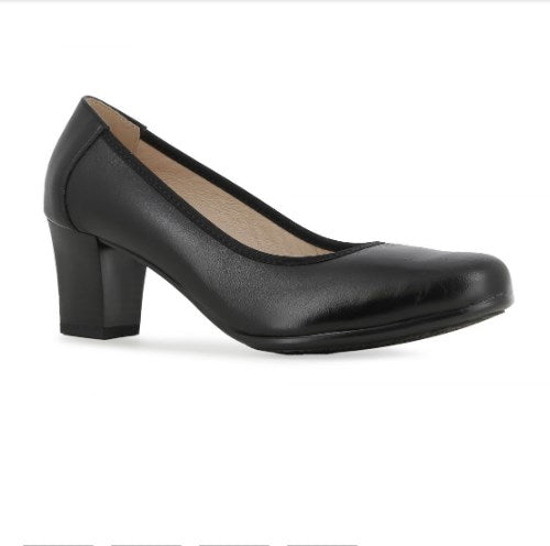 Alpina Pira 865E-1 Black Anatomic Pump. A classic design for all hours of the day. The upper part of the shoe is soft, offering smoothness and comfort from the toes to the heel. The insole is soft and cushioned, providing greater comfort while walking. The heel is distinctive and thick, at a height that helps maintain a natural and healthy posture. The sole is shock-absorbing and slip-resistant, providing optimal shock absorption and reliable grip for safe walking.