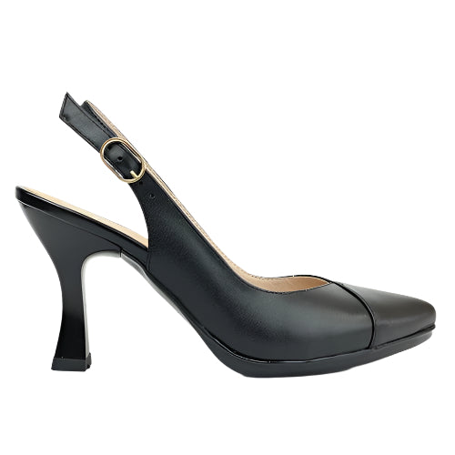 Desiree Sami13 Black Anatomic Sandal, closed at the toes and open at the heel. The back features an adjustable metal buckle along with an elastic insert to ensure a better fit for every foot. The soft insole, combined with a cushioned metatarsal pad and Total Flex technology, offers enhanced comfort, excellent flexibility, and effective shock absorption. The sole is anti-slip and shock-absorbing, providing stability and comfort with every step.