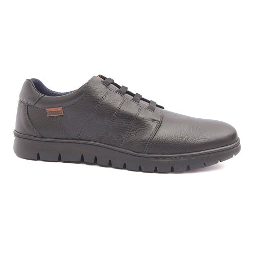 Baerchi Black 5312-3000 Anatomic Mens Shoe slip-on with black elastic laces on the upper for an easy fit on any foot. The external stitching creates a beautiful result.The insole is soft and removable. Its shock-absorbing, non-slip sole provides comfort and safety with every step.