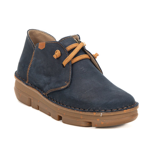 On Foot Touch Blue 29728 anatomic ankle boot with beige elastic laces over the instep for better containment. The insole is soft and removable. Its shock-absorbing and non-slip brown sole provides a restful and safe walking.